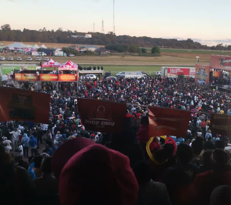Selekta Base Foundation, Base Solutions Group founder and CEO Arnold T Chigwerewe, right, hip-hop artist Voltz Jt, centre and Yahya Goodvibes during the diapers donation in Chitungwiza last week.